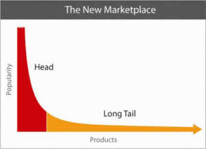 I recently read Chris Anderson’s book The Long Tail. For those who have not read it, the long tail is a mathematics term that helps describe how a business can maximize their sales by catering to niches rather than focusing only on hits, or popular items. By selling smaller amounts of more items, you generate larger sales because you can meet more people’s needs. Doing business on the Internet makes this easy because it lets you lower inventory and distribution costs, allows 24/7 shopping, provides a very large inventory and enables differential pricing; all items Chris discusses in his book that are key for the long tail. Companies like Amazon and NetFlix embody this principal by offering millions of items online rather than the thousands available in their brick and mortar competitors. Since product information is just an entry in a database, customers can tag and sort items as they see fit and find exactly what they want. It’s easy to slice and dice an inventory into limitless categories and present that to customers in a way that makes sense to them. This helps make sense of the limitless quantity and fuels the sale of niche items.