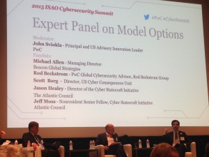 A lot of the discussion centered around mechanics and potential issues with good information sharing. Currently organizations share threat indicators with each other and government agencies in an attempt to collectively prevent cyberattacks and the inevitable disruption in business operations. This can be malware files, originating IP addresses and activities within a network that are out of the norm.