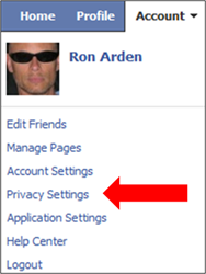 2. Click on Account in the upper right corner of the page and select Privacy Settings.