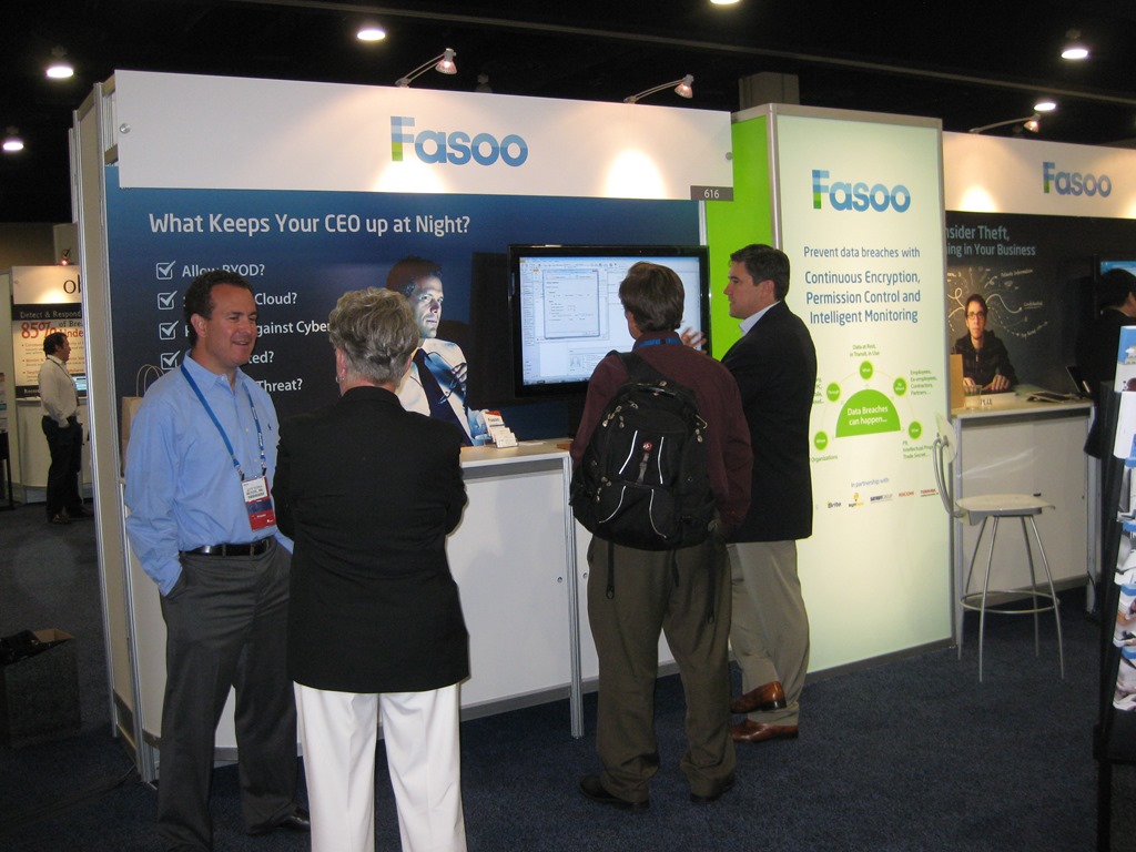 Insider Threats solved at Fasoo boothTalking to attendees, I got a sense that most people are ready to seriously tackle security vulnerabilities in their organizations.  I spoke to CISOs and other security professionals who are very concerned about protecting sensitive files from unauthorized people inside their organizations.  One gentleman from a financial institution wanted to make sure that sensitive client information is only available to the analysts and account executives that should see it.  A woman from a government agency was concerned about protecting all the files they get from credit agencies, banks and other financial institutions on employees and consumers.