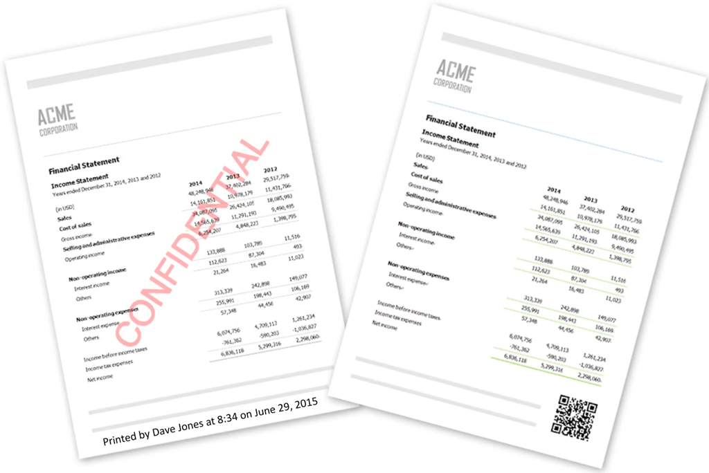 Taking a data-centric approach to your security can give you a more holistic view into how sensitive data is used in your organization. You could block printing or require approval prior to printing a document if the document contains sensitive information. Each printout can show a visible watermark showing who printed it, including company logo, user name, IP address, time, date and other identifying information. This allows you to know the source of a potential data breach and deters people from inappropriate behavior when handling sensitive patient information.