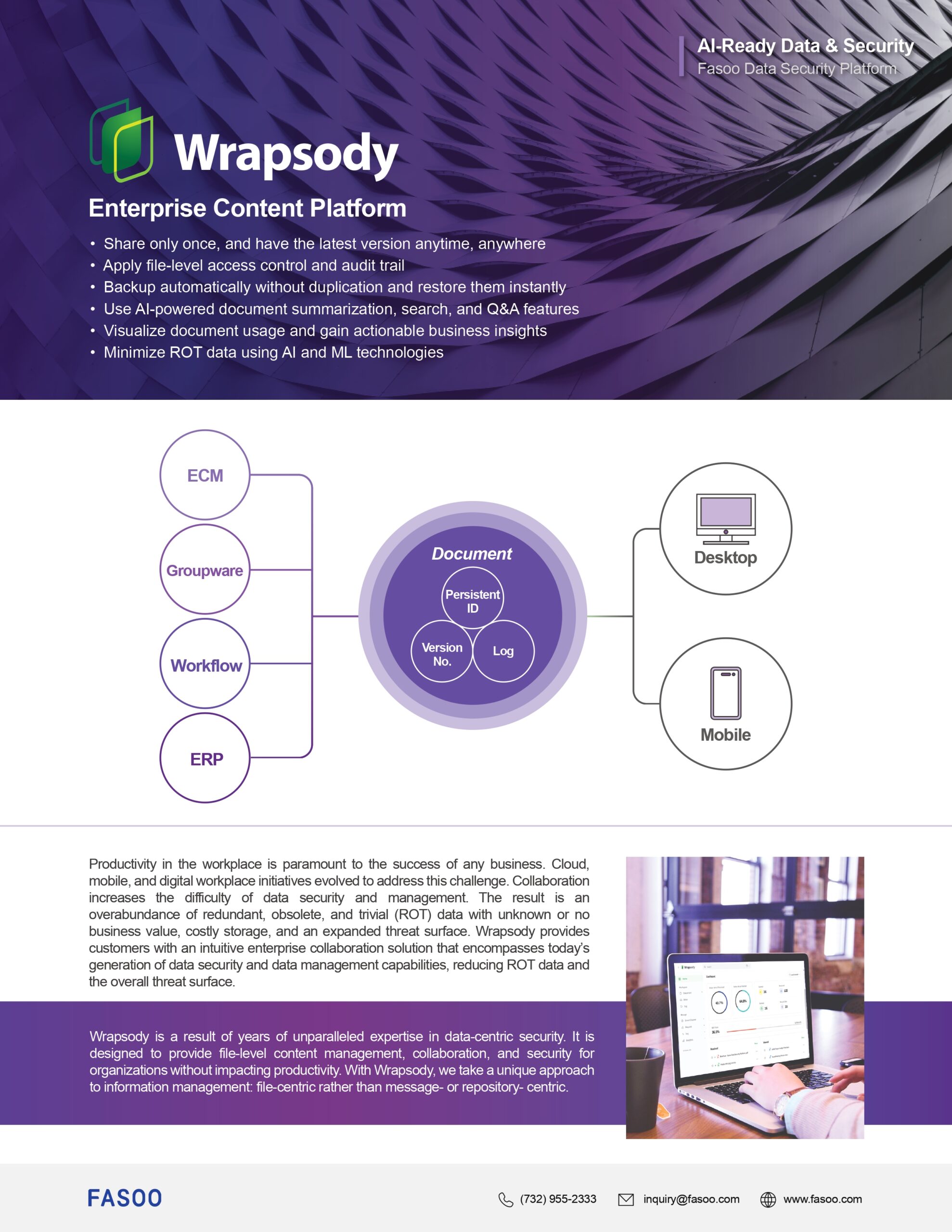 Wrapsody provides customers with an intuitive enterprise collaboration solution that encompasses today’s generation of data security and data management capabilities reducing ROT data and the overall threat surface.